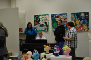Anlässlich der Eröffnung haben Schüler der EF Musik gemacht und Herr Roth vom Elternverein hat Getränke angeboten.
