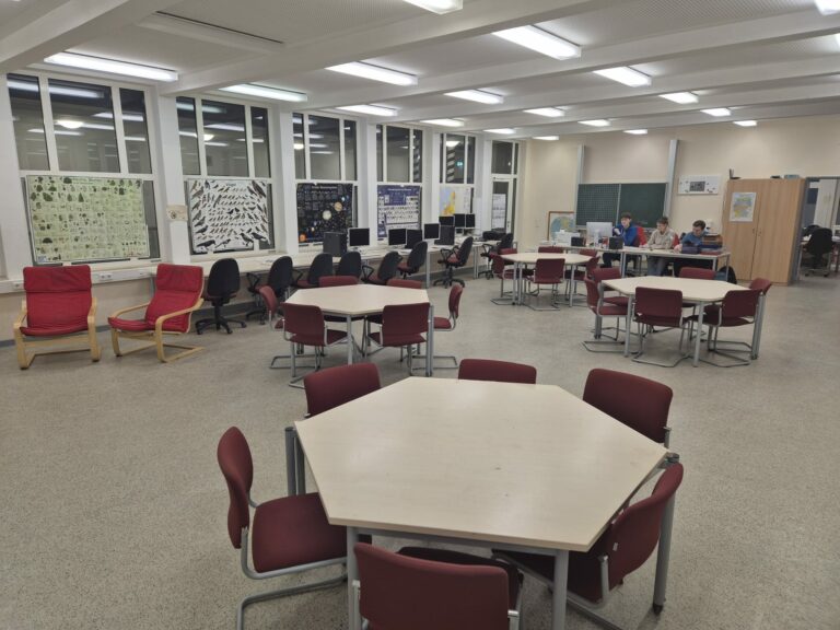 Die Cafeteria der Schule wurde renoviert. Die hellen und freundlichen Farben wurden von den Schülerinnen und Schülern selbst ausgewählt.