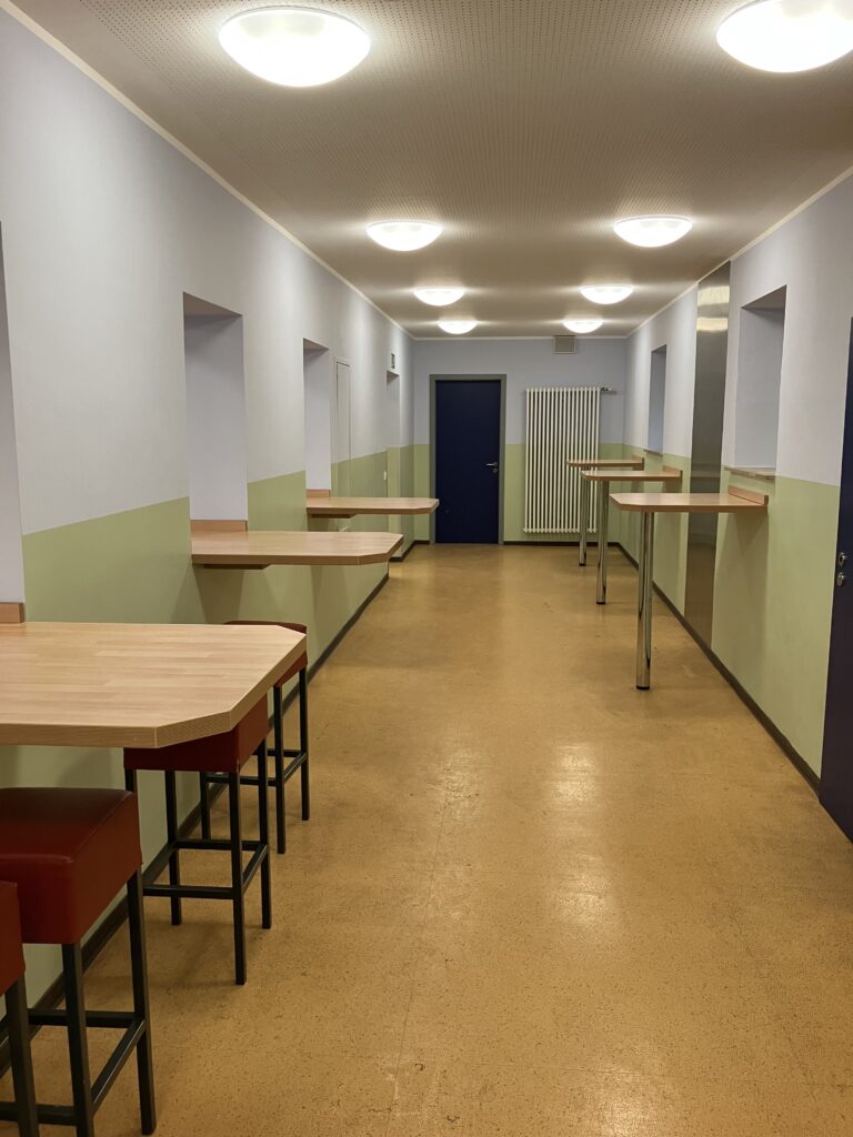 Die Cafeteria der Schule wurde renoviert. Die hellen und freundlichen Farben wurden von den Schülerinnen und Schülern selbst ausgewählt.