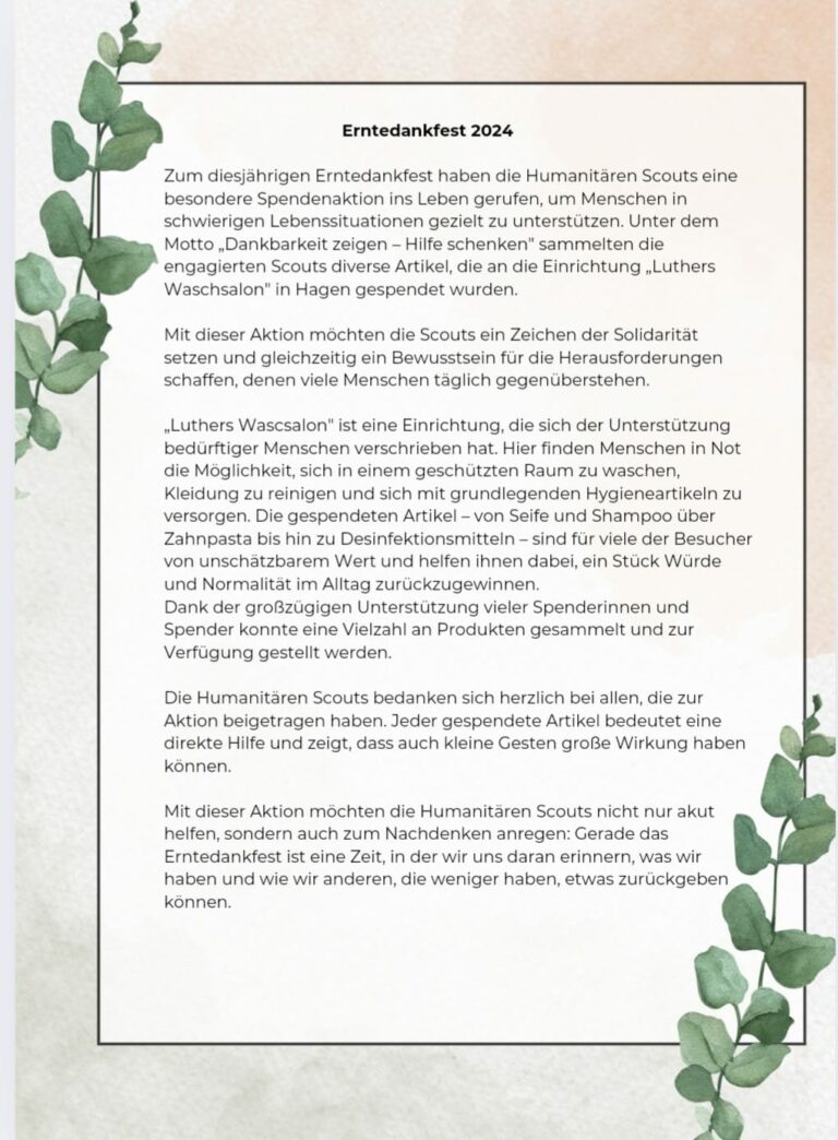 Unsere Humanitären Scouts sind bereit, einen Unterschied zu machen. Sie bringen frische Perspektiven, neue Energie und wertvolle Kompetenzen mit, um in Zusammenarbeit mit anderen positive Veränderungen zu bewirken. Wir laden Sie ein, ihre Reise und ihre Projekte zu begleiten und zu unterstützen.